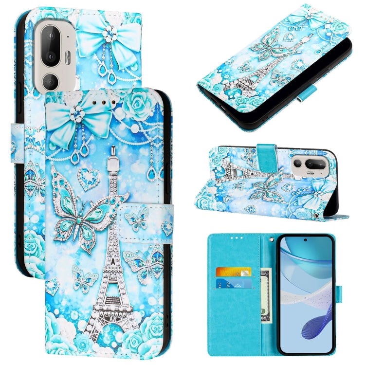 Funda de Cuero para HTC U24 Pro con Diseño Mariposa en Forma de Torre (Liso)