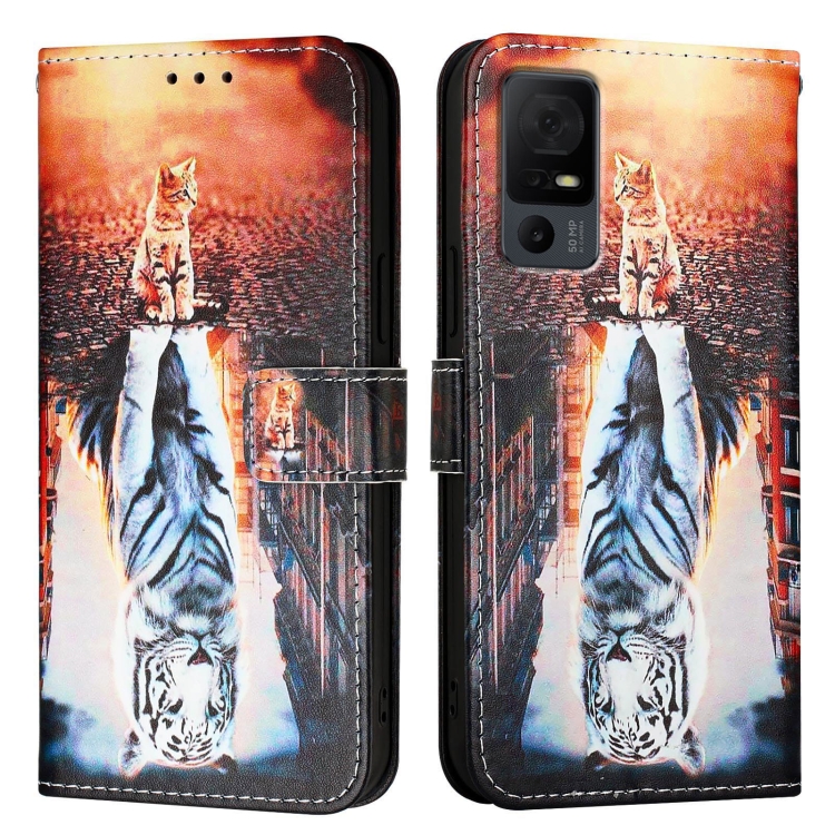 Funda de Cuero para TCL 40 XL/40T T608DL con Diseño de Gatos y Tigres (Liso)