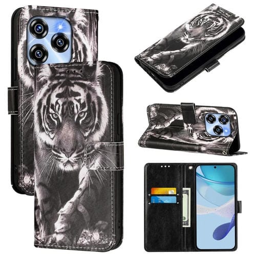 Funda de Cuero para Oukitel C50 con Diseño Tigre (Blanco y Negro)