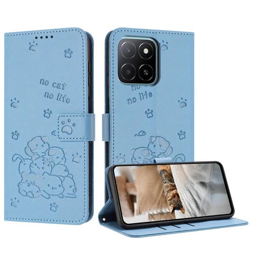 Funda de Piel para Honor X5B y X5B Plus con Diseño de Gatito en Relieve y Cordón (Azul)