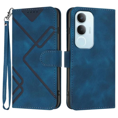 Funda de Cuero con Textura de Piel y Patrón de Líneas Globales para Vivo Y19S (Azul Real)