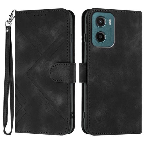 Funda de Cuero para Motorola Moto G05 con Diseño de Líneas y Tacto Suave (Negra)