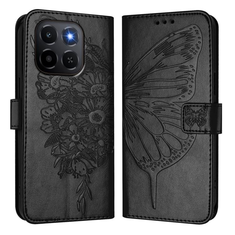 Funda de cuero con diseño de mariposa en relieve para Honor X6c 4G (negra)