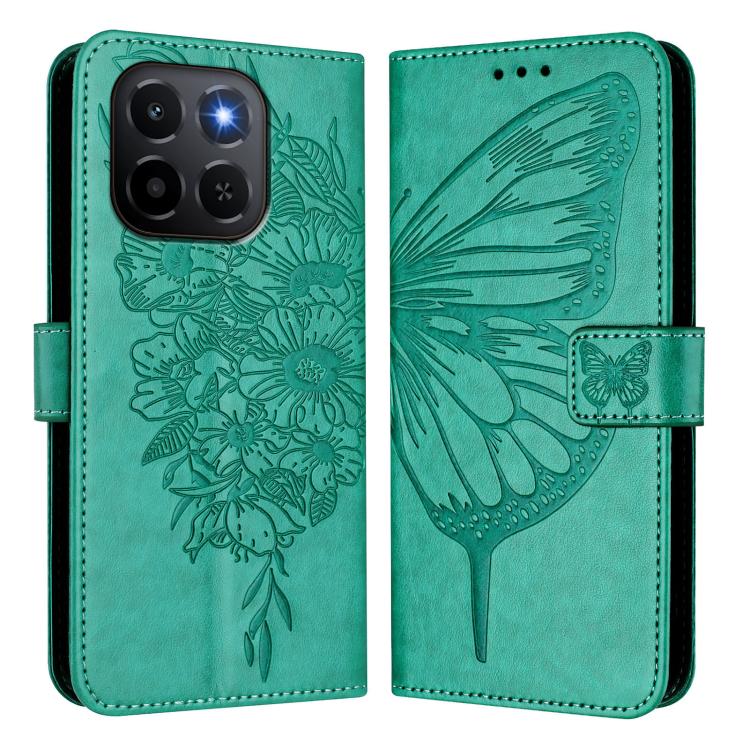 Funda de cuero con diseño de mariposa en relieve para Honor X6c 4G (verde)