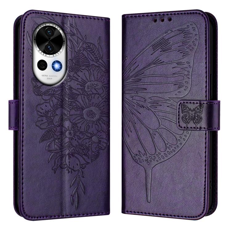 Funda de Cuero para Huawei Nova 13 y Nova 12 con Diseño de Mariposa en Relieve (Morado Oscuro)