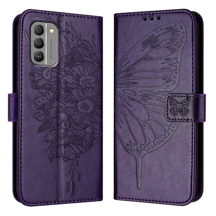 Funda de Cuero para Nokia G400 con Diseño de Mariposa en Relieve (Morado Oscuro)
