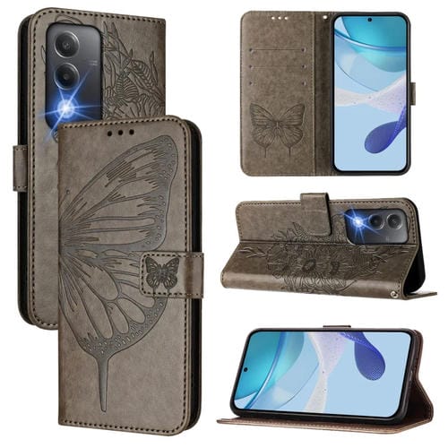 Funda de Piel con Diseño de Mariposa En Relieve para Oppo A80 5G Eu (Gris)