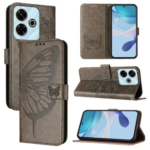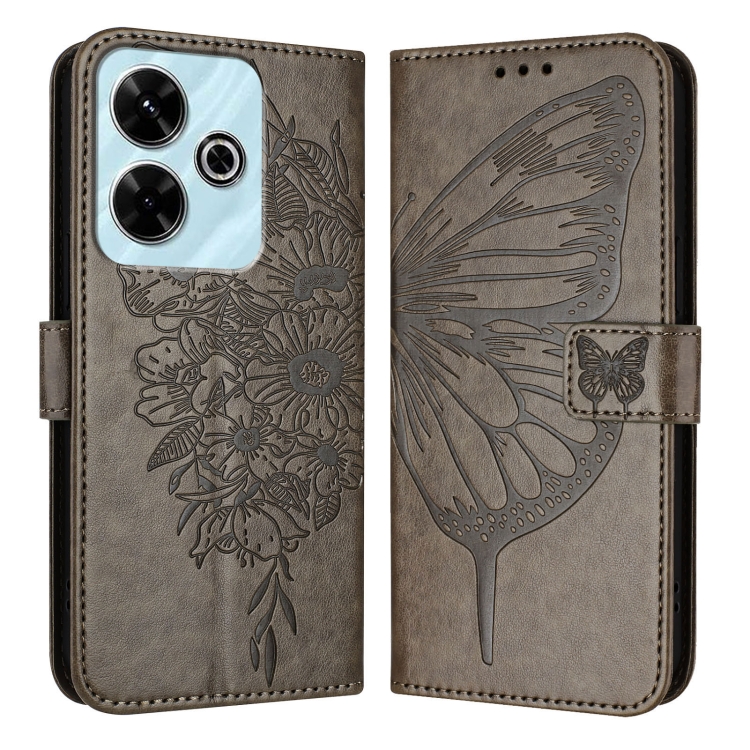 Funda de Cuero con Diseño de Mariposa En Relieve para Redmi 13 4G (Gris)