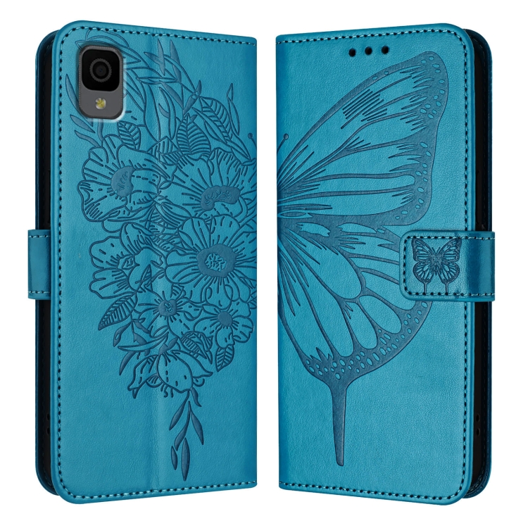 Funda de Cuero para TCL 30Z T602Dl con Diseño de Mariposa en Relieve (Azul)