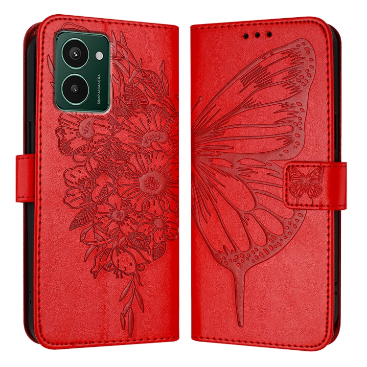 Funda de Cuero para Teléfono Hmd Pulse Pro con Diseño de Mariposa En Relieve (Rojo)