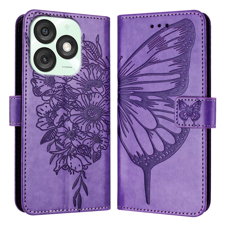 Funda de Cuero para Teléfono Itel A50 con Diseño de Mariposa en Relieve (Morado Claro)