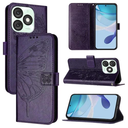 Funda de Cuero para Itel A50 con Diseño de Mariposa en Relieve (Morado Oscuro)