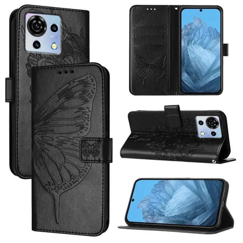 Funda de Cuero para ZTE Blade V50 Vita con Diseño de Mariposa en Relieve (Negra)