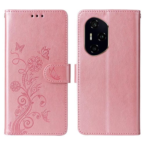 Funda de Cuero Honor 300 Ultra con Mariposas y Flores en Relieve (Oro Rosa)