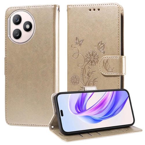 Funda de Cuero Honor X50I+ Diseño Mariposas y Flores en Relieve (Dorada)