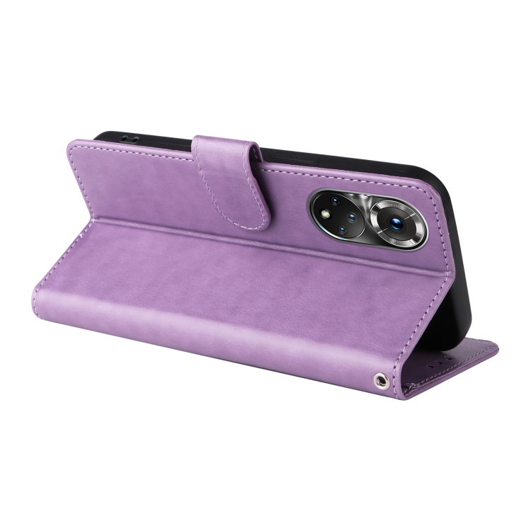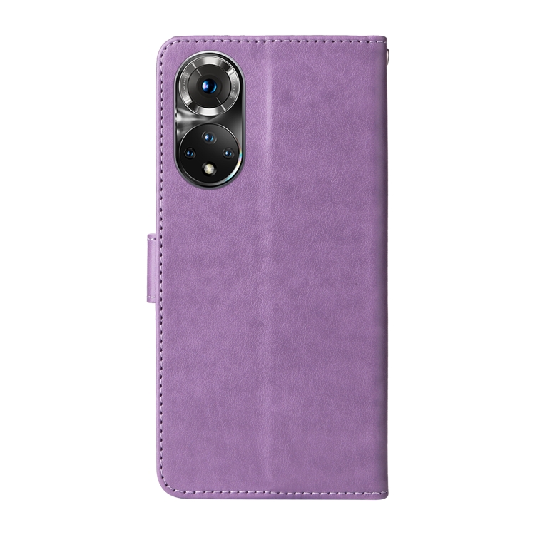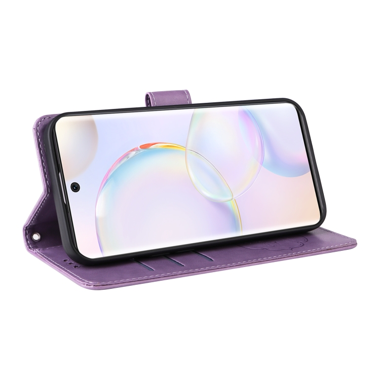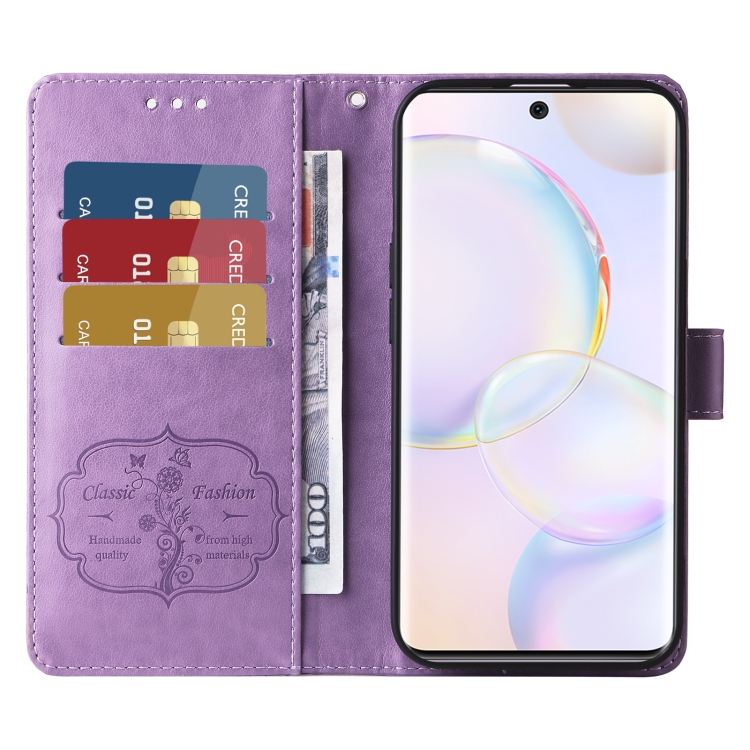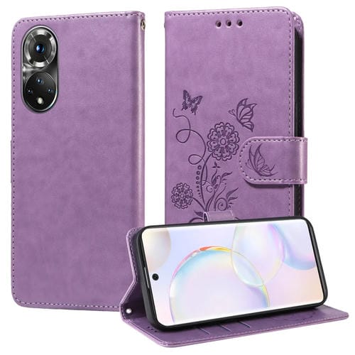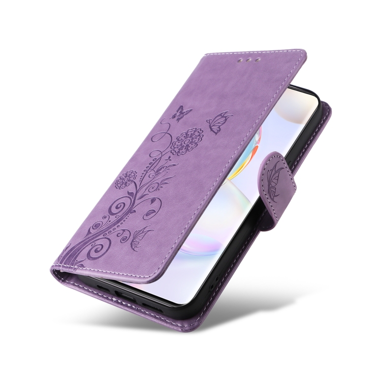 Funda de Cuero con Diseño de Mariposas y Flores en Relieve para Honor 50 5G Huawei Nova 9 (Morado)
