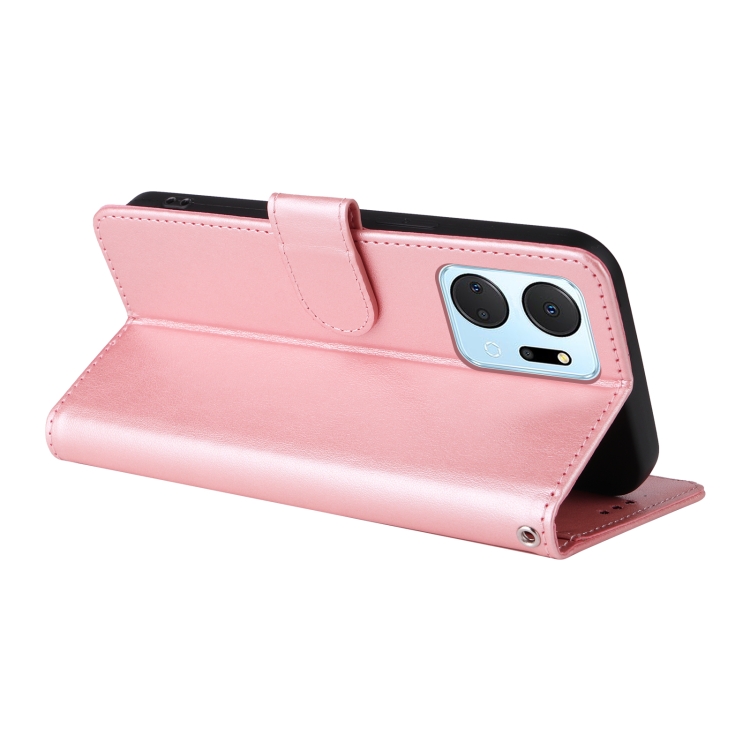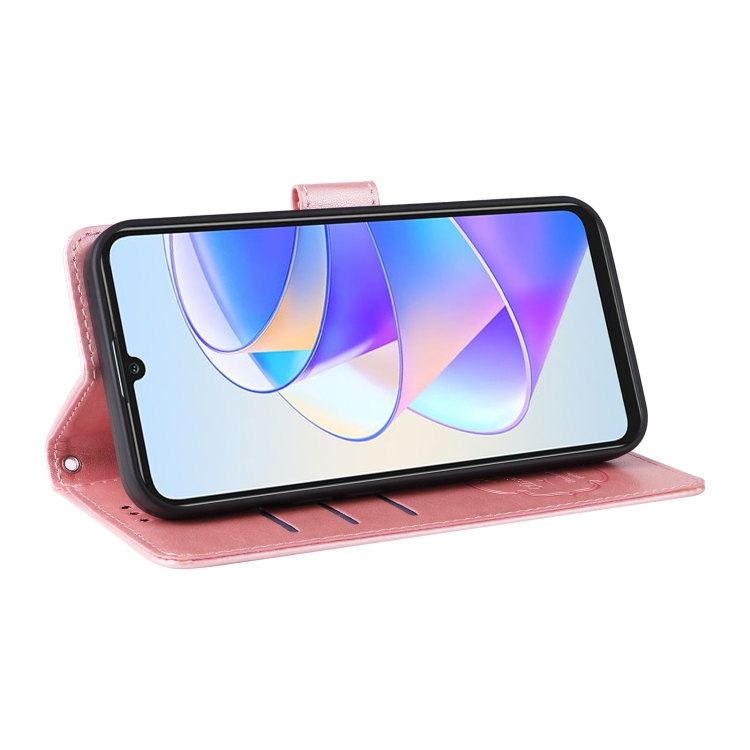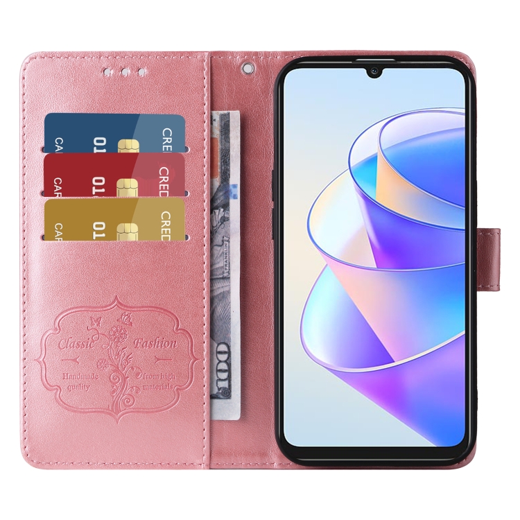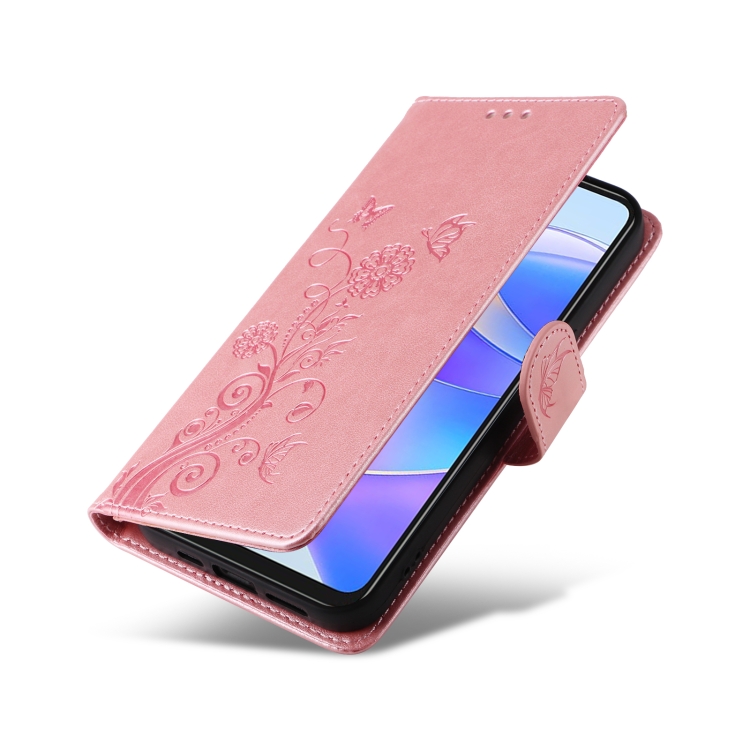 Funda de Cuero para Honor X7A 4G Play 7T con Diseño de Mariposas y Flores en Relieve (Oro Rosa)