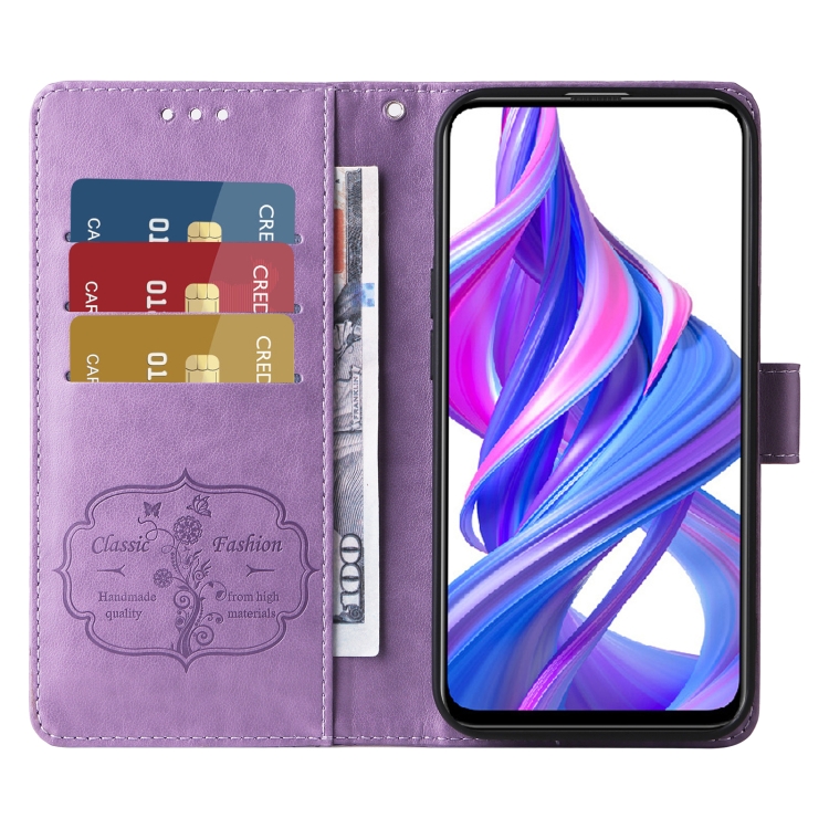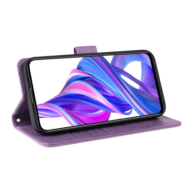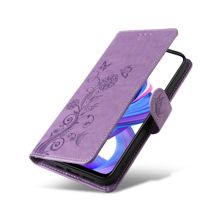 Funda de Cuero para Honor X9 5G/4G/X30 con Diseño de Mariposas y Flores en Relieve (Morado)