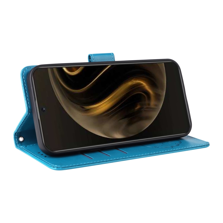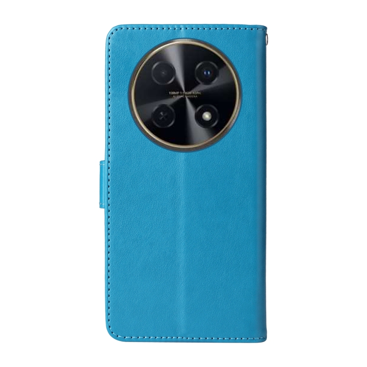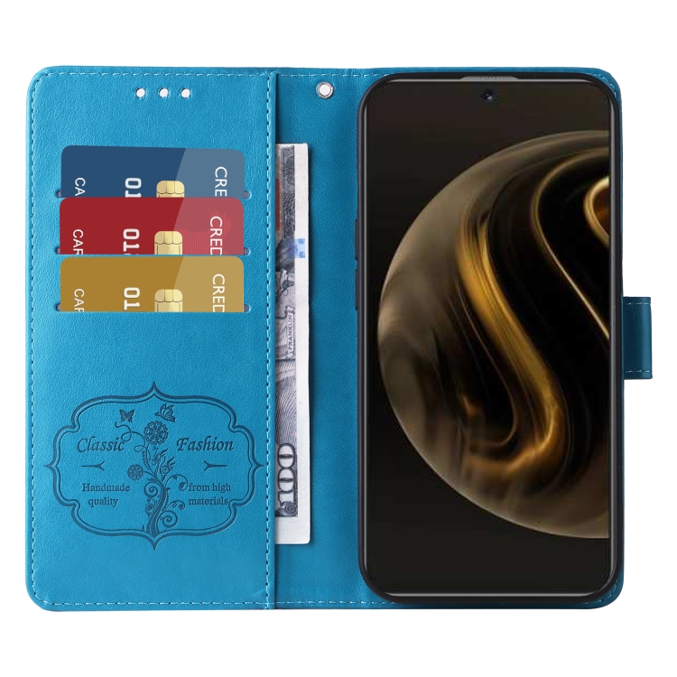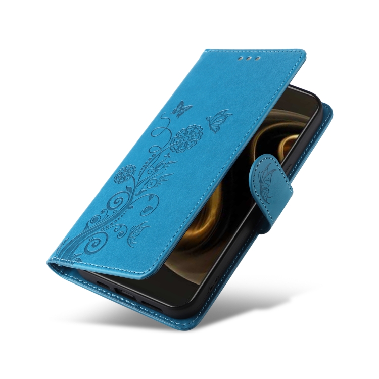 Funda de Cuero Huawei Enjoy 70 Pro 4G Nova 12I con Diseño de Mariposas y Flores en Relieve (Azul)