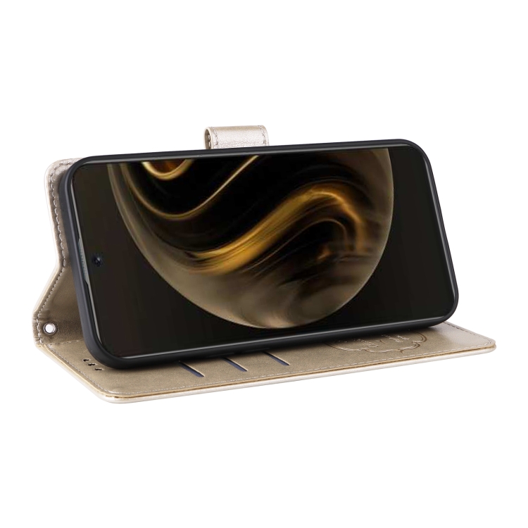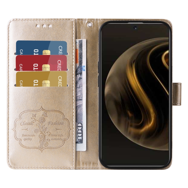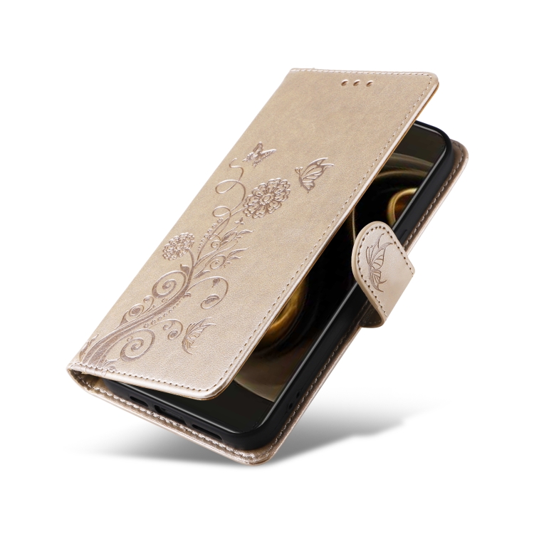 Funda de Cuero Huawei Enjoy 70 Pro 4G Nova 12I con Diseño de Mariposas y Flores en Relieve (Dorada)