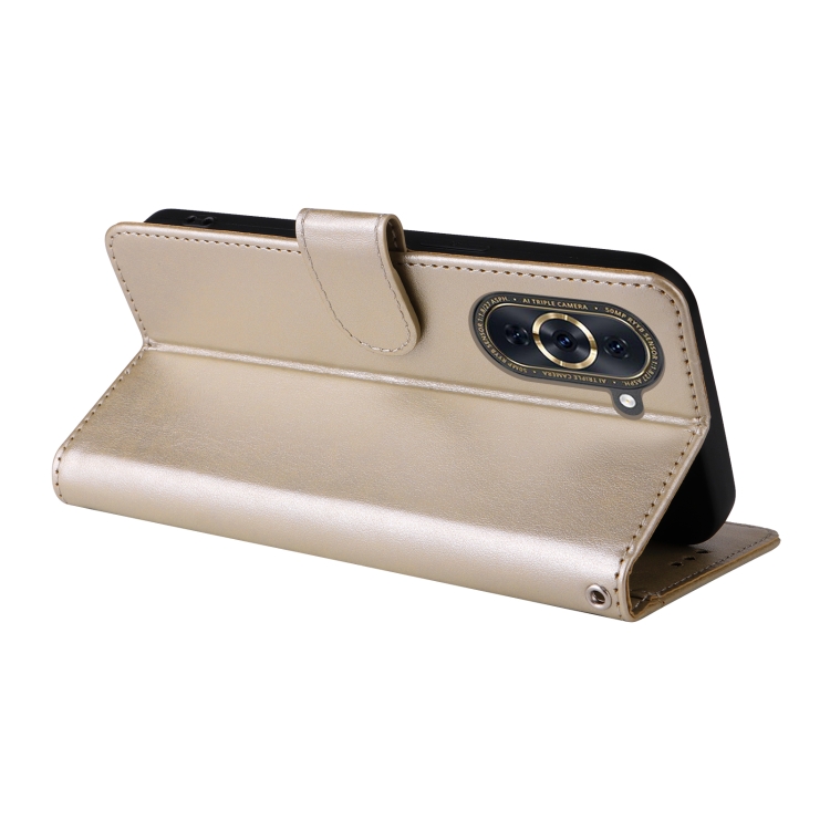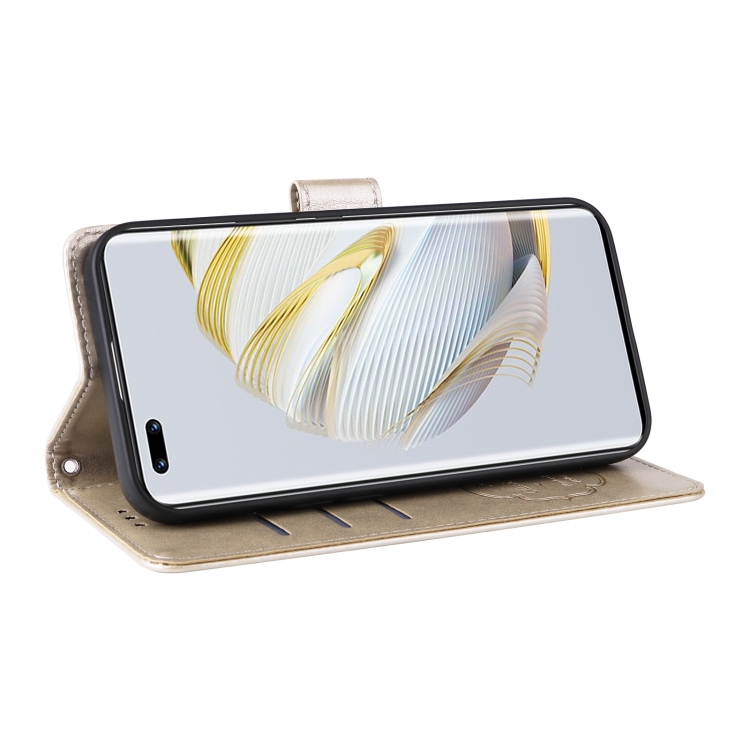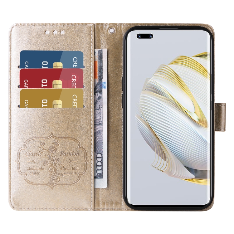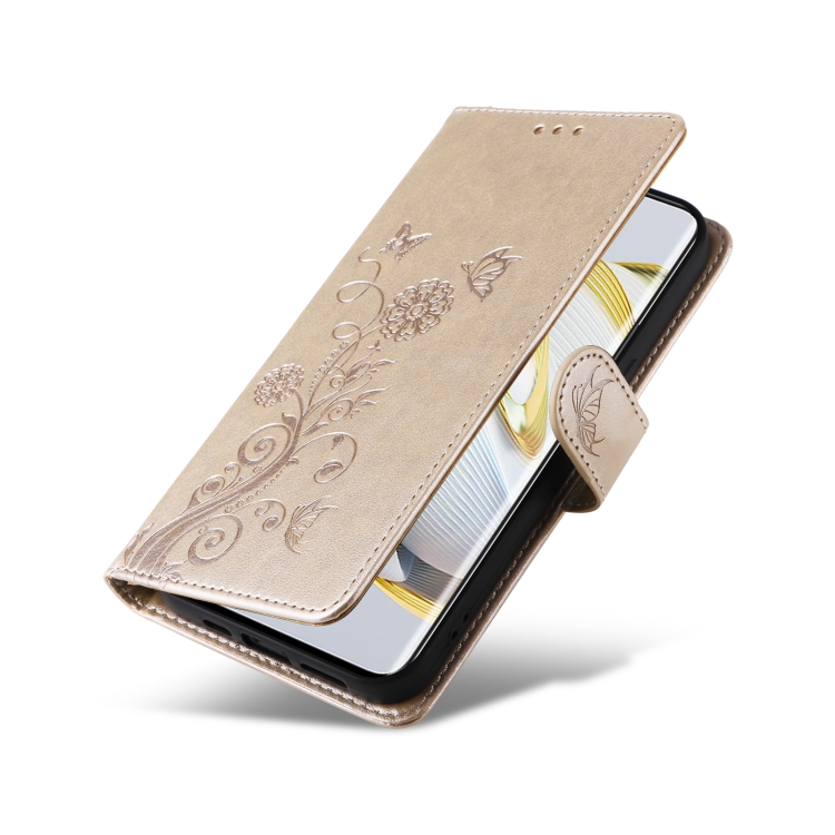 Funda de Cuero Huawei Nova 10 Pro con Diseño de Mariposas y Flores en Relieve (Dorada)