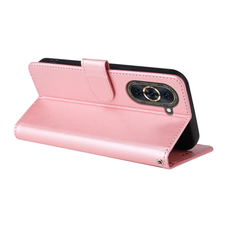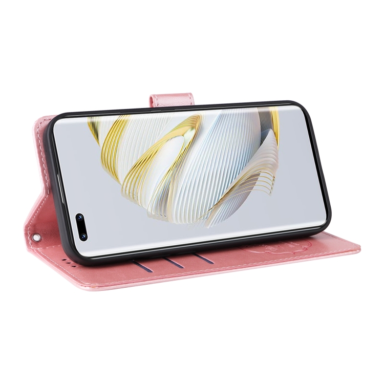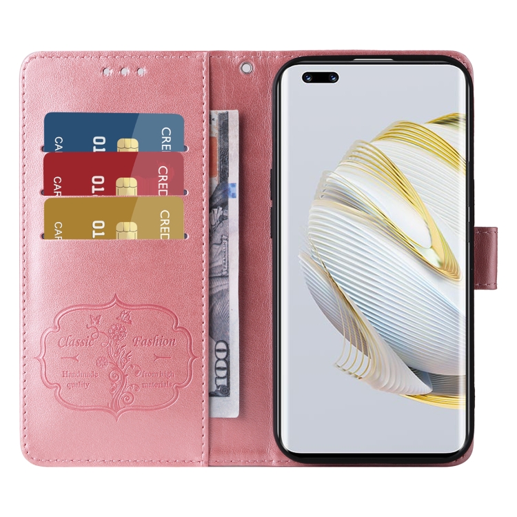 Funda de Cuero Huawei Nova 10 Pro con Diseño de Mariposas y Flores en Relieve (Oro Rosa)