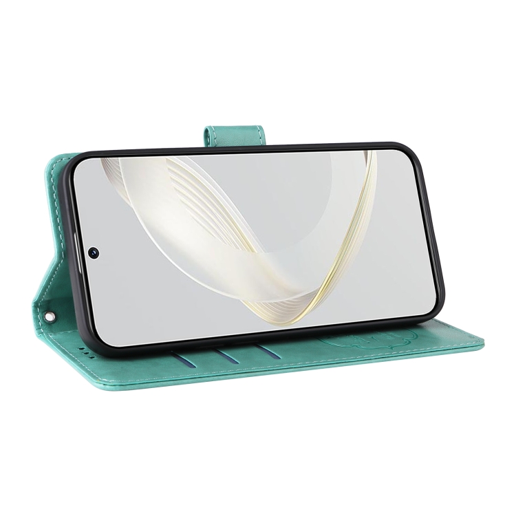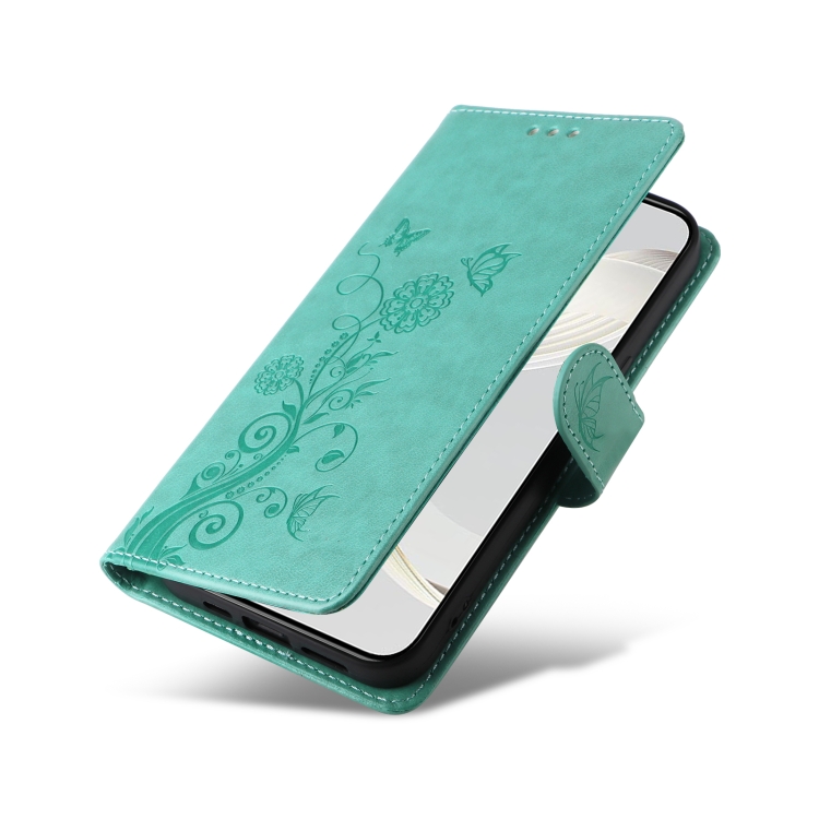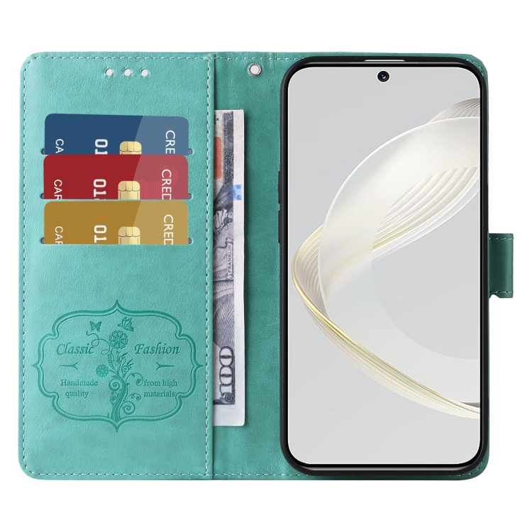 Funda de Cuero Huawei Nova 11 5G/4G y Nova 12 Lite con Mariposas y Flores en Relieve (Verde)