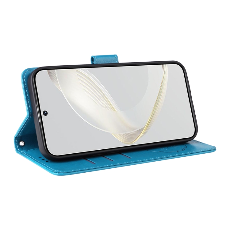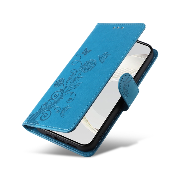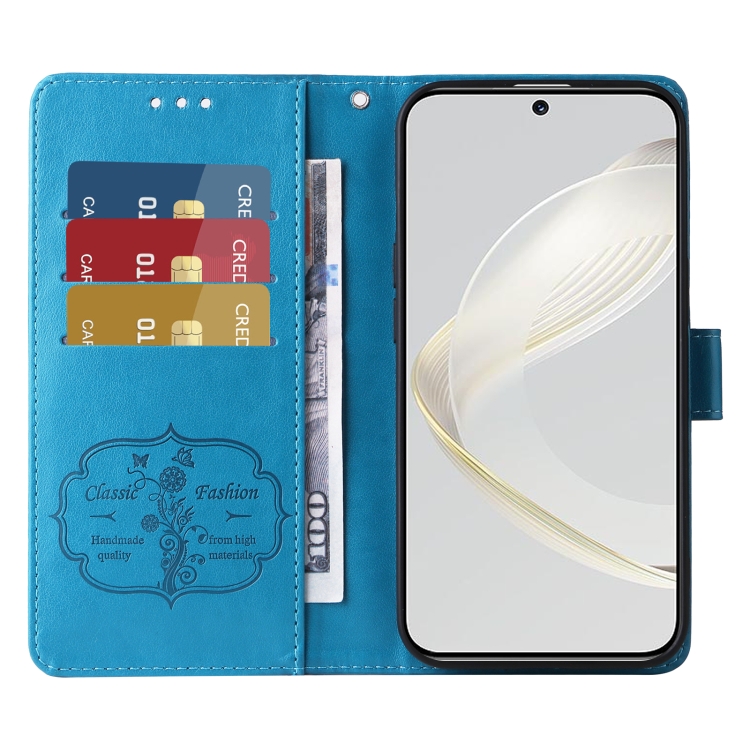 Funda de Cuero para Huawei Nova 11 Pro y Nova 11 Ultra con Diseño de Mariposas y Flores en Relieve (Azul)