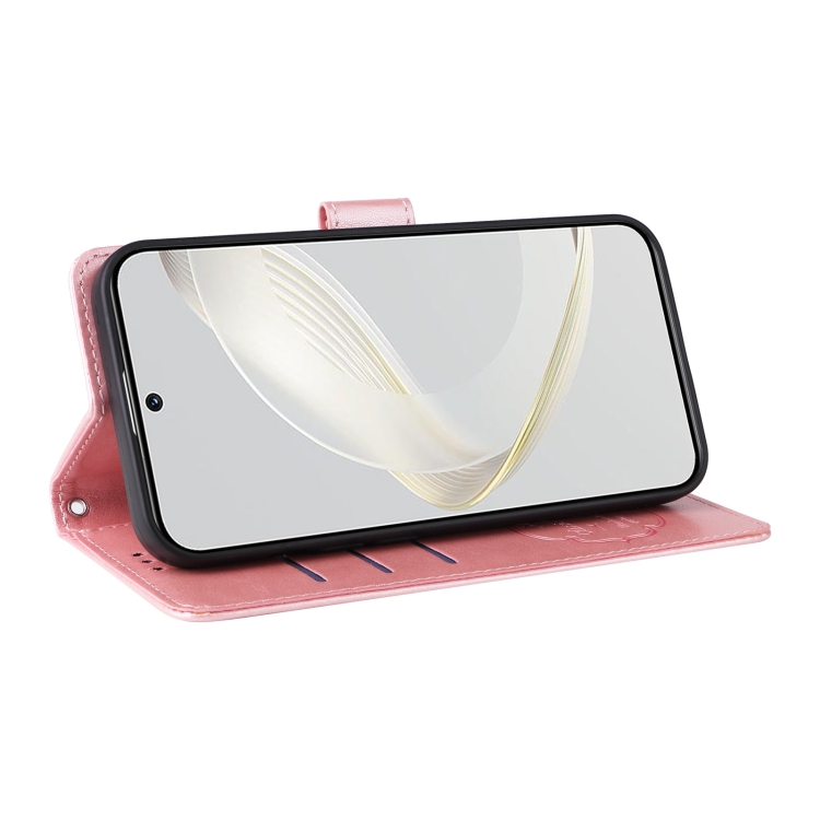 Funda de Cuero Huawei Nova 11 Pro Nova 11 Ultra Diseño Mariposas y Flores En Relieve (Oro Rosa)