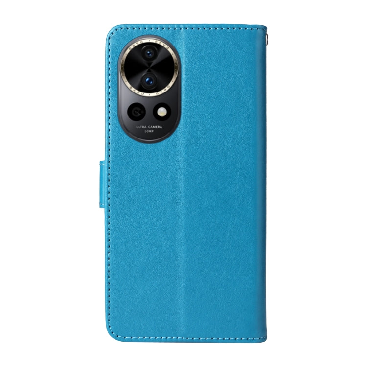 Funda de Cuero Huawei Nova 12 con Diseño de Mariposas y Flores en Relieve (Azul)