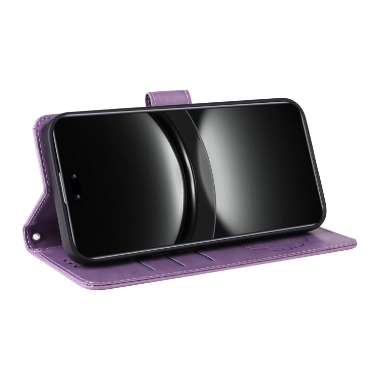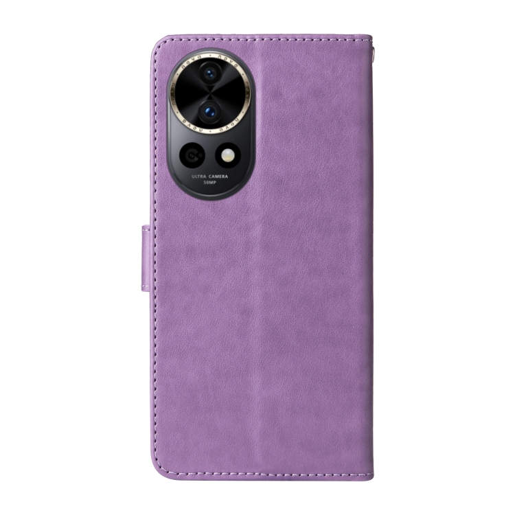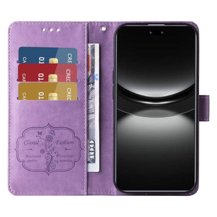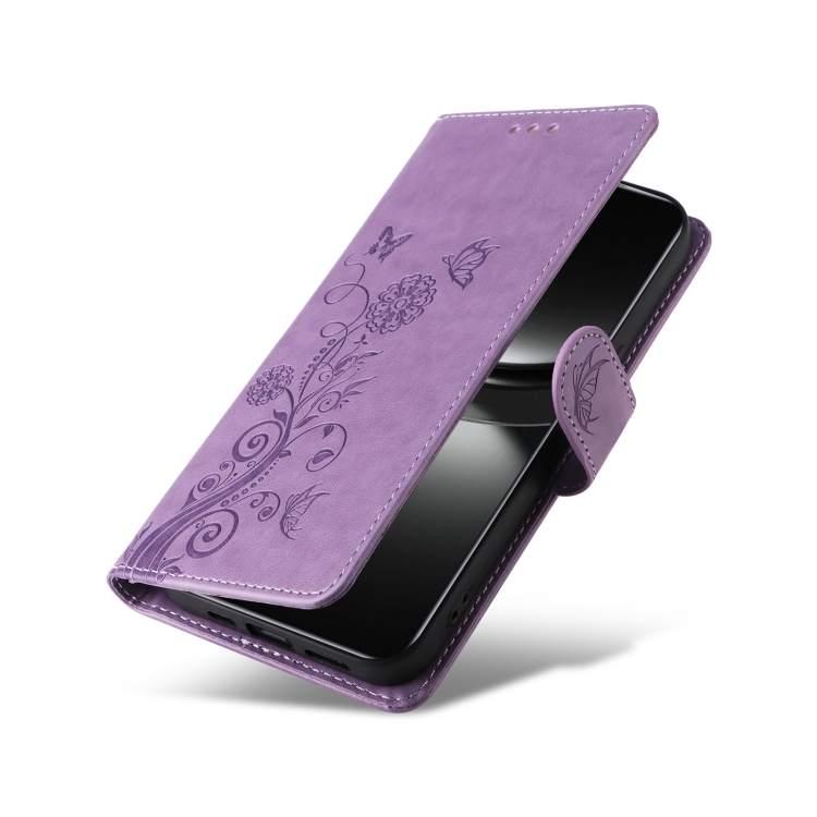 Funda de Cuero Huawei Nova 12 Pro y Nova 12 Ultra Diseño Mariposas y Flores en Relieve (Morado)