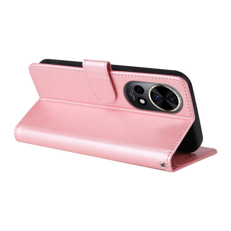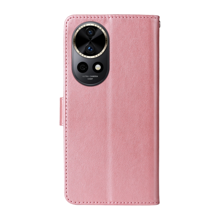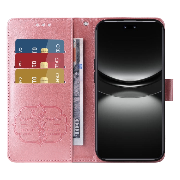 Funda de Cuero Huawei Nova 12 Pro y Nova 12 Ultra con Diseño de Mariposas y Flores en Relieve (Oro Rosa)