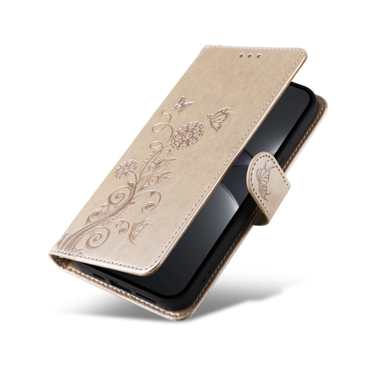 Funda de Cuero Huawei Nova 13 Pro con Diseño de Mariposas y Flores en Relieve (Dorada)