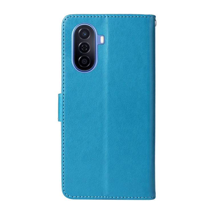 Funda de Cuero Huawei Nova Y70 Plus con Diseño de Mariposas y Flores en Relieve (Azul)