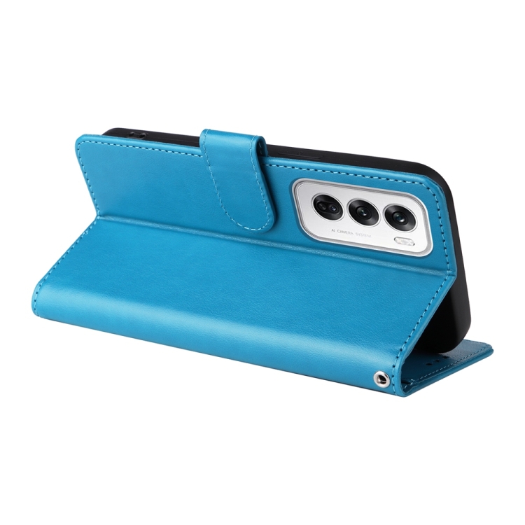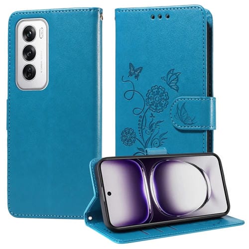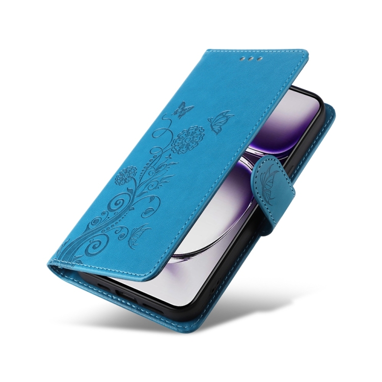 Funda de Cuero con Diseño de Mariposas y Flores En Relieve para Oppo Reno12 5G (Azul)