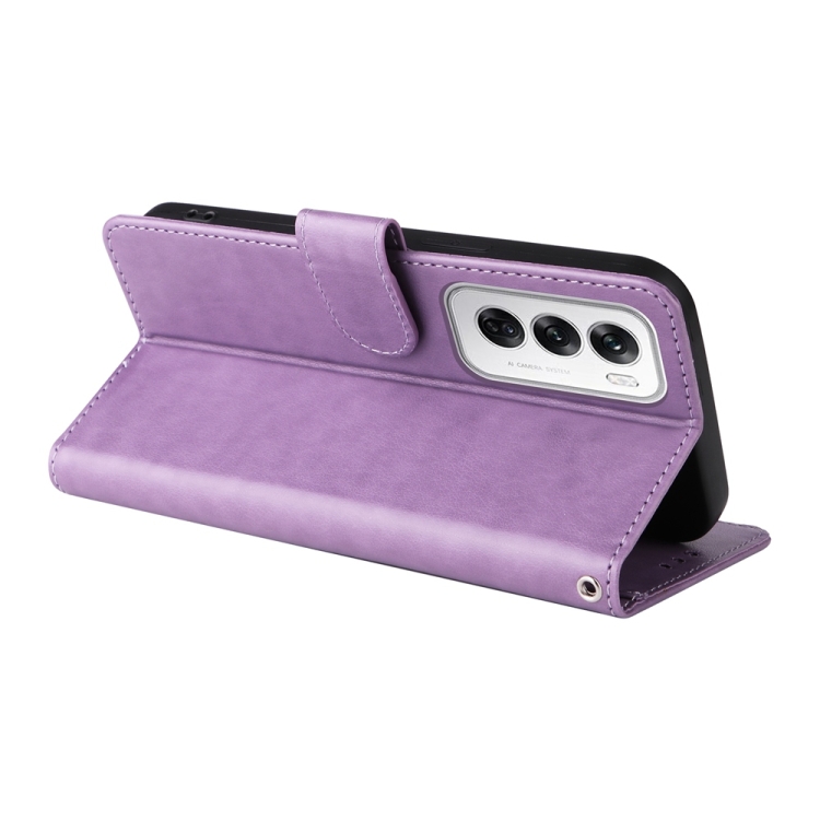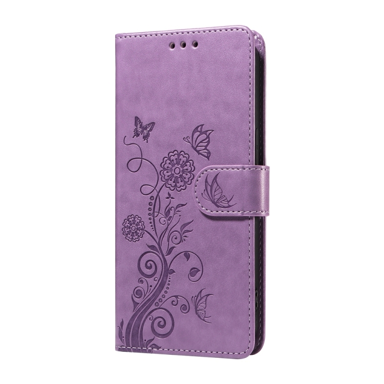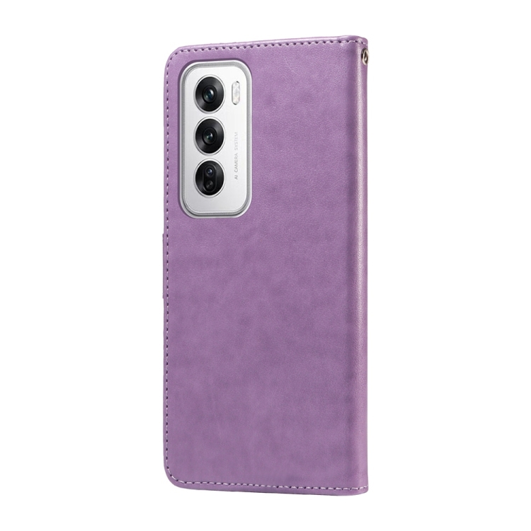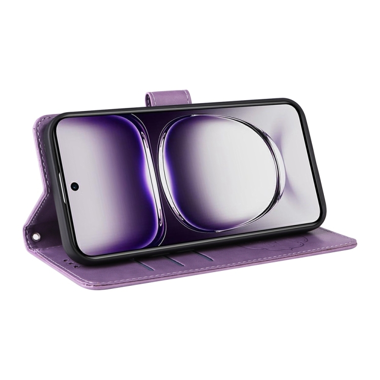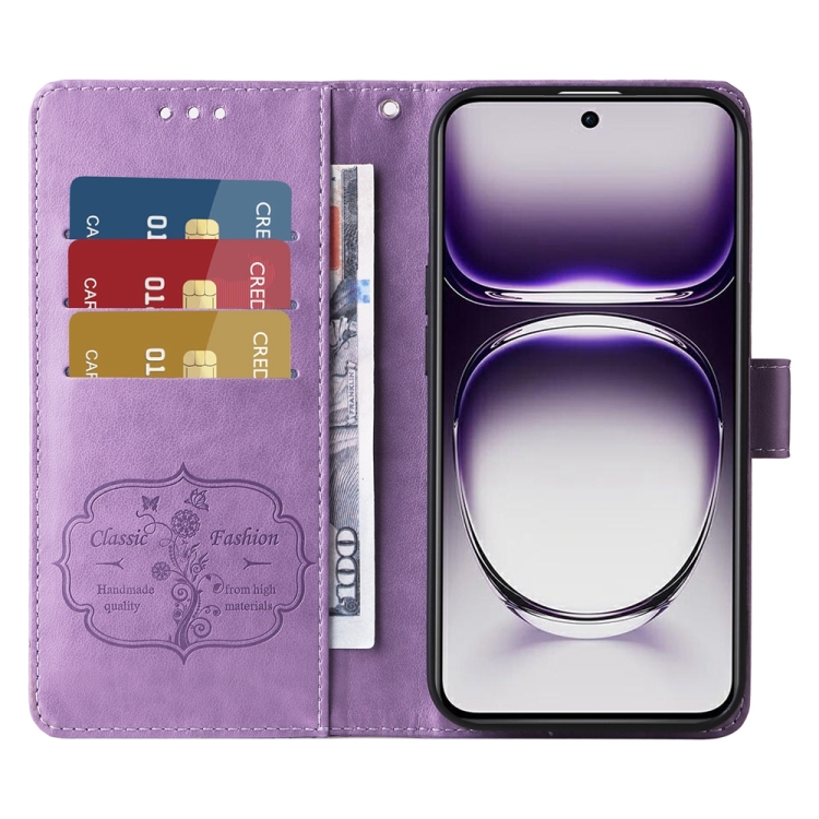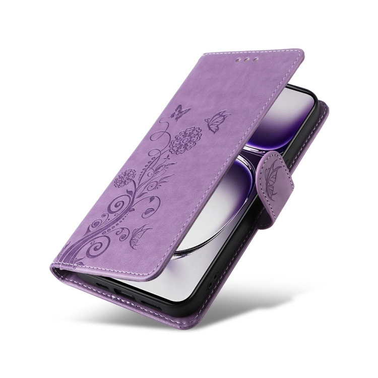Funda de Cuero con Diseño de Mariposas y Flores En Relieve para Oppo Reno12 5G (Morado)