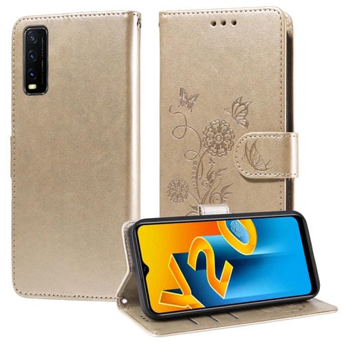 Funda de Cuero con Diseño de Mariposas En Relieve para Vivo Y20/Y20I/Y20S/Y12S (Dorada)