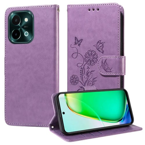 Funda de Cuero con Diseño de Mariposas y Flores En Relieve para Vivo Y28 4G (Morado)