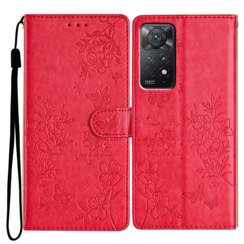 Funda de Cuero con Diseño de Mariposas y Flores para Redmi Note 11 Pro 5G (Rojo)