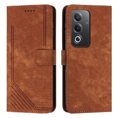 Funda de Cuero con Diseño de Rayas y Tacto de Piel para Oppo A3 Pro Global Skin Feel con Cordón Largo (Marrón)