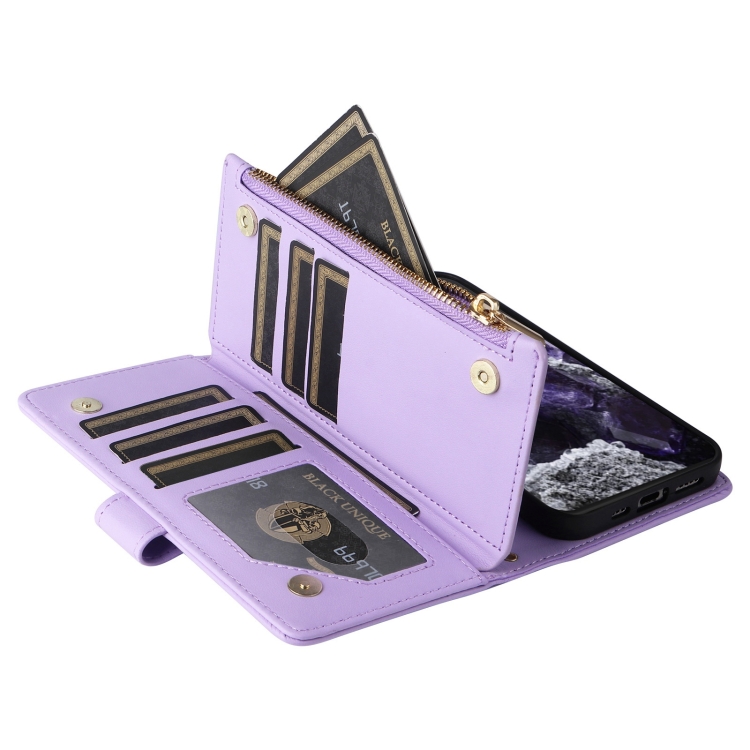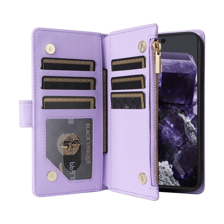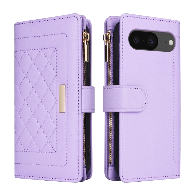 Funda de Cuero con Diseño de Rombos y Billetera Cruzada con Cremallera para Google Pixel 8 (Morado)