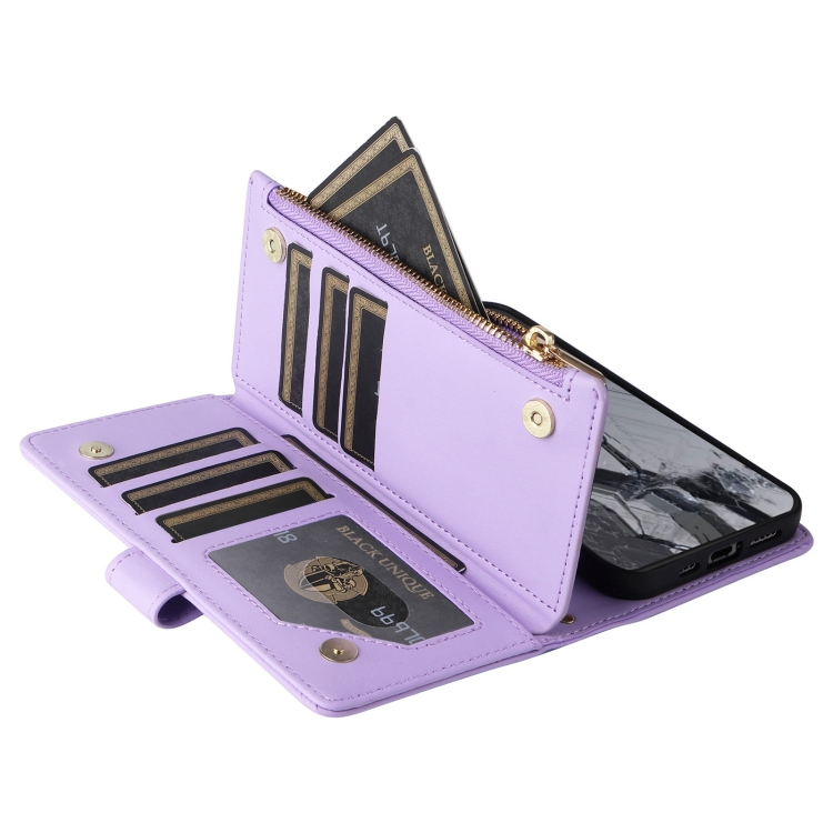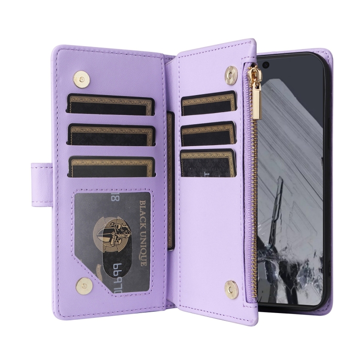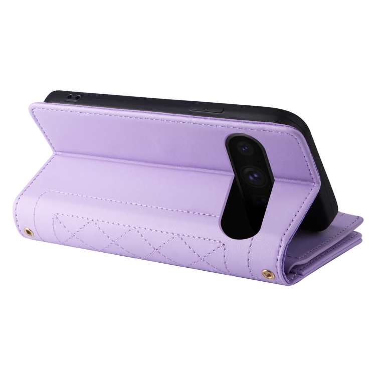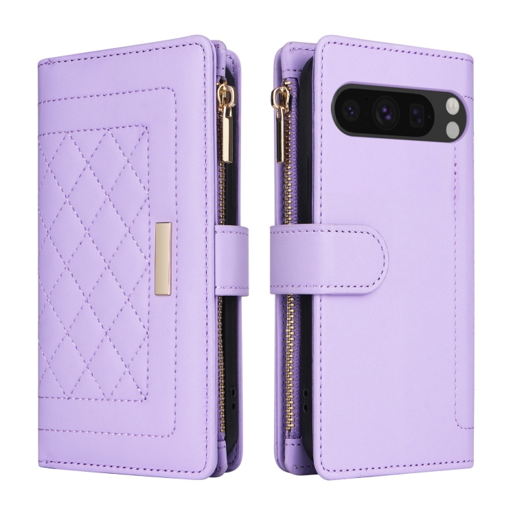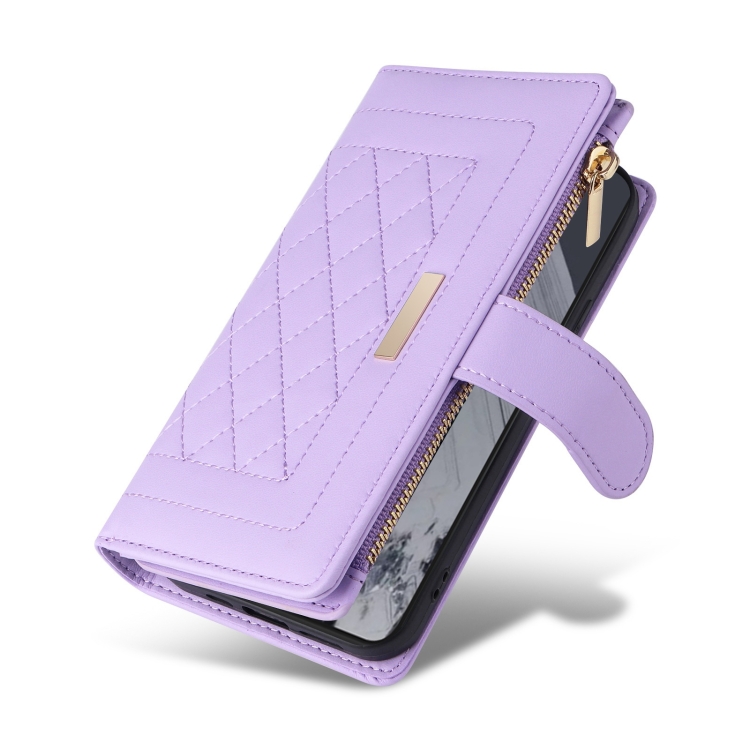 Funda de Cuero con Diseño de Rombos y Billetera Cruzada con Cremallera para Google Pixel 8 Pro (Morado)