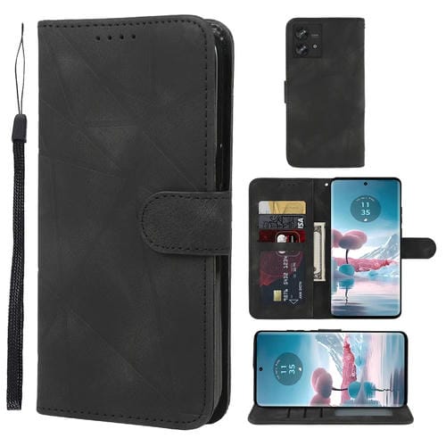 Funda de Cuero Motorola Edge 40 Neo Skin Feel Diseño Geométrico y Líneas (Negra)