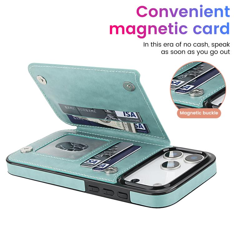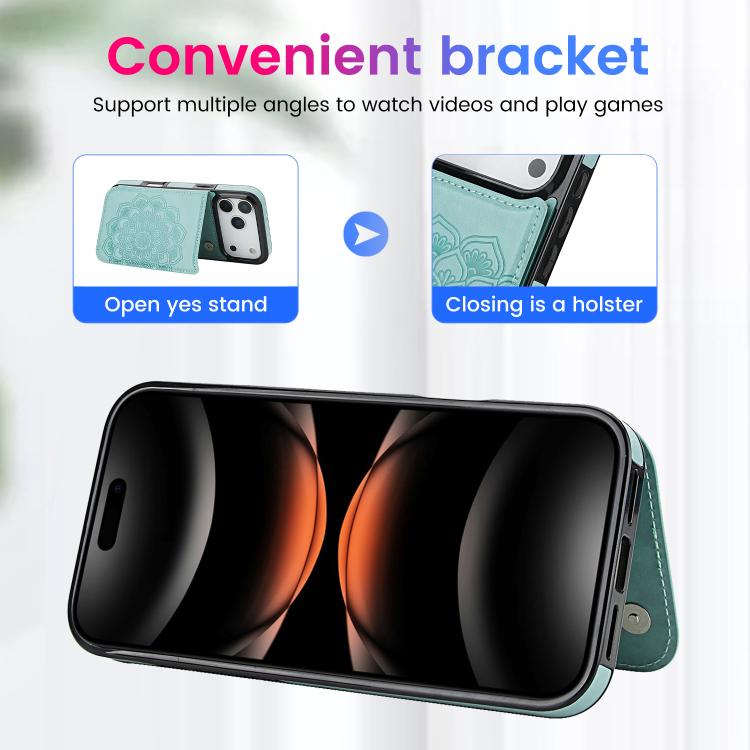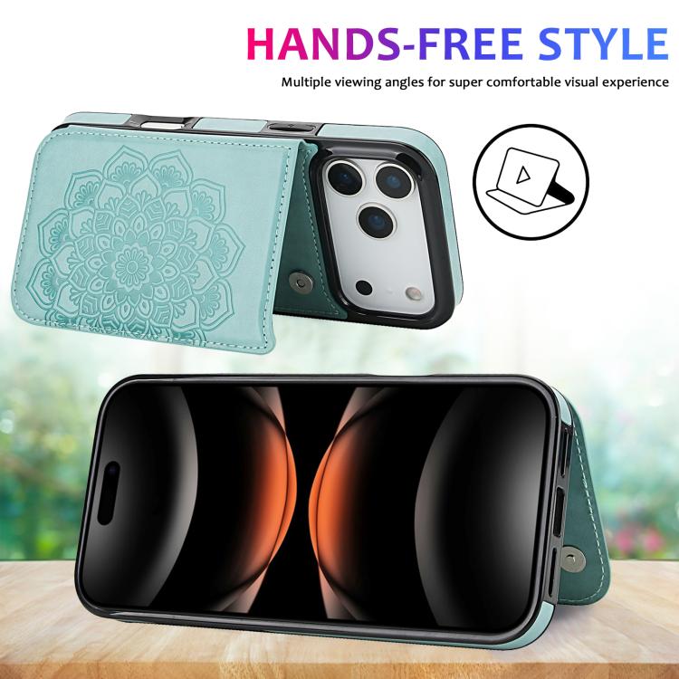 Funda de cuero con doble hebilla y diseño de mandala para iPhone 17 Pro Max (verde)