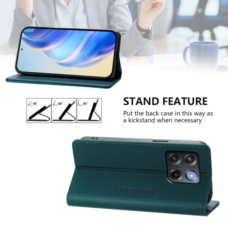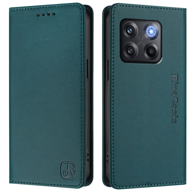 Funda de Cuero con Doble Pliegue y Succión Magnética para OnePlus Ace Pro y OnePlus 10T Global Rc01 (Verde Oscuro)
