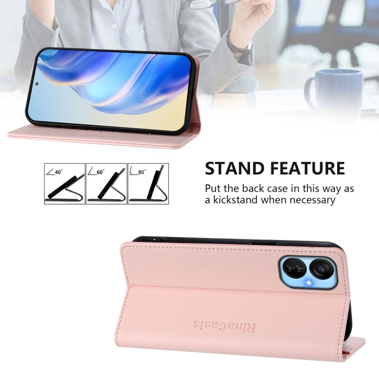 Funda de Cuero para Tecno Spark 9T/9 Pro Rc01 con Doble Pliegue y Succión Magnética Rfid (Rosa)