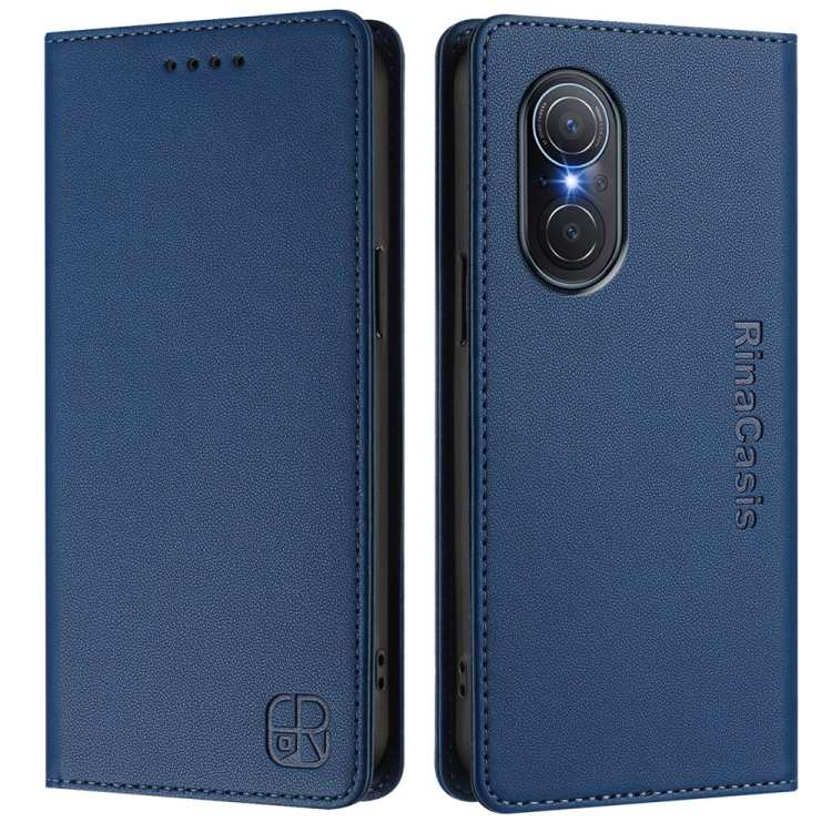 Funda de Cuero con Doble Pliegue y Succión Magnética RFID para Honor 50 SE / Huawei Nova 9 SE RC01 (Azul Oscuro)