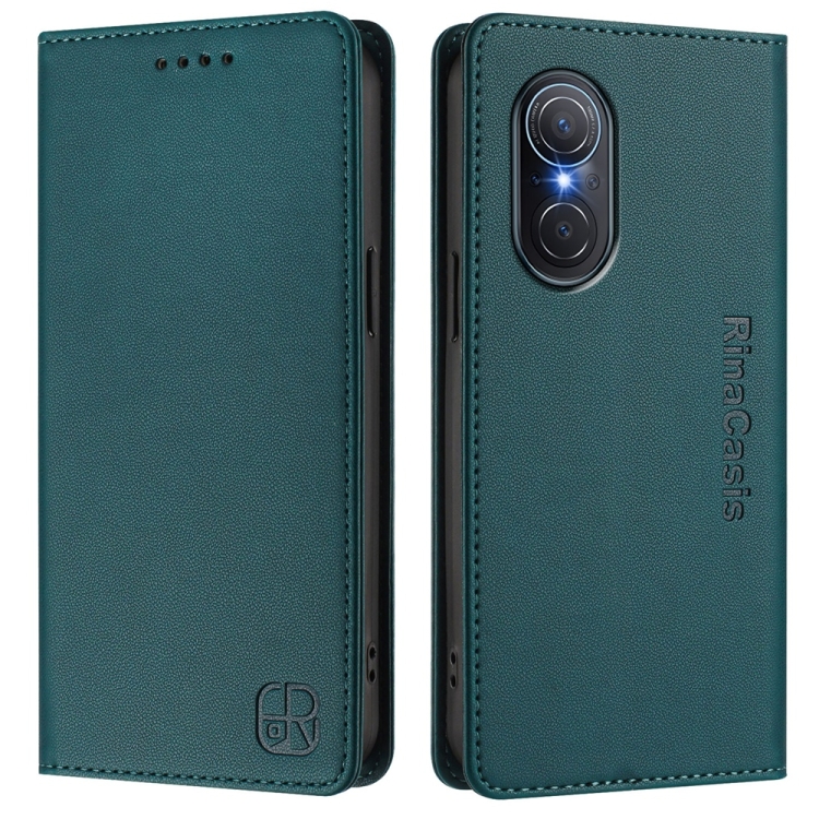 Funda de Cuero con Doble Pliegue y Succión Magnética Rfid para Honor 50 Se / Huawei Nova 9 Se Rc01 (Verde Oscuro)