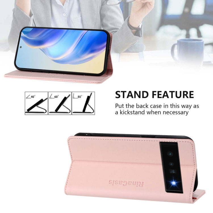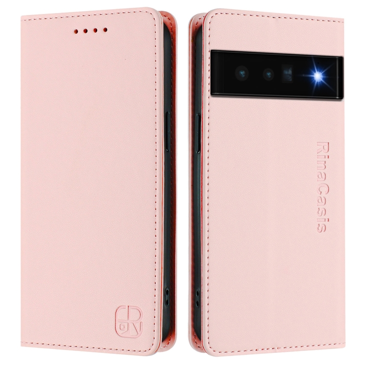 Funda de Cuero con Doble Pliegue y Succión Magnética Rfid para Google Pixel 6 Pro Rc01 (Rosa)