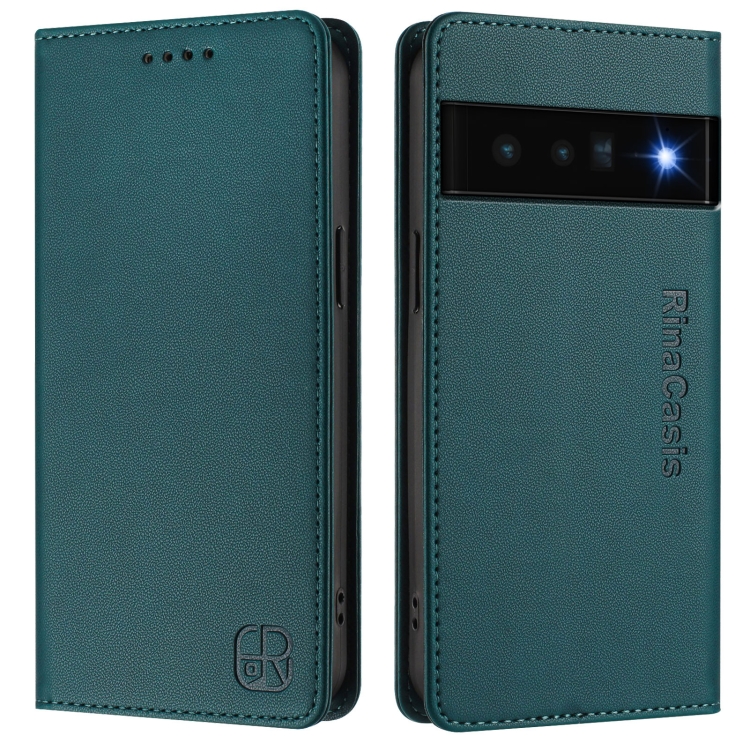 Funda de Cuero para Google Pixel 6 Pro Rc01 con Doble Pliegue y Succión Magnética Rfid (Verde Oscuro)
